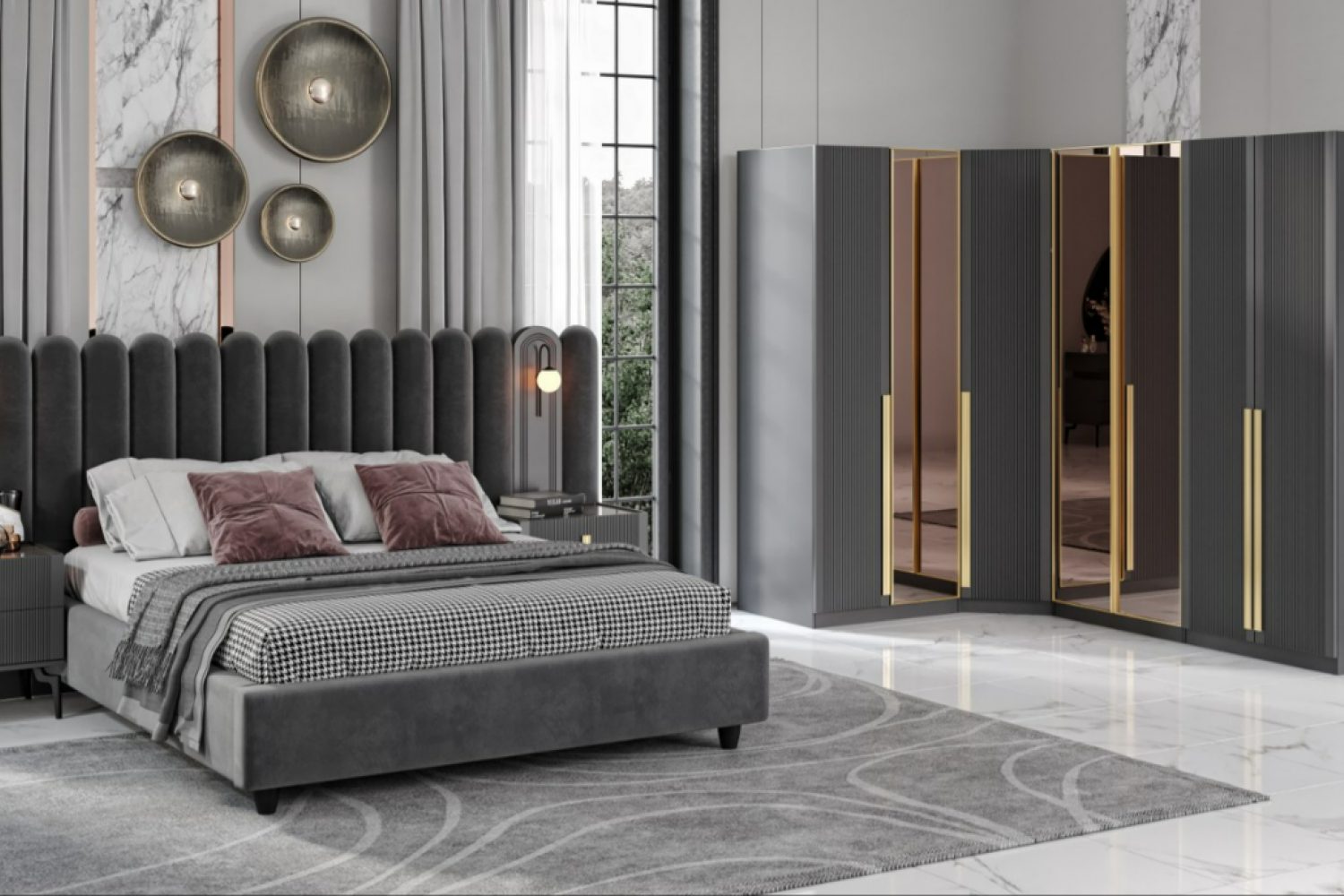 Çatalca Köşe Antrasit Yatak Odası Takımı %100 MDF